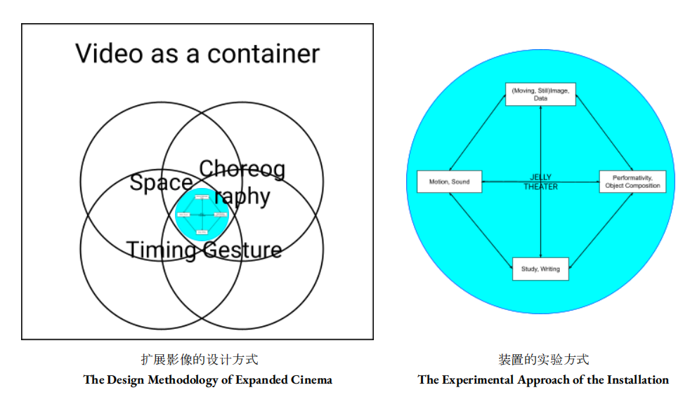 “The Jelly Theater” is an installation and expanded cinema performance. It aims to create a work produced through creative feedback, involving four artists inspired by research material on Wenzhou cuisine, specifically “Jelly.” Each artist, according to their role, informs and collaborates to materialize their contribution. This production method is led by Zheng Yezhou and facilitated by Chen Zi(study and writing), Camille Casemier (performativity and object composition), Juan Flores(motion and sound), and himself(moving/still image and data).